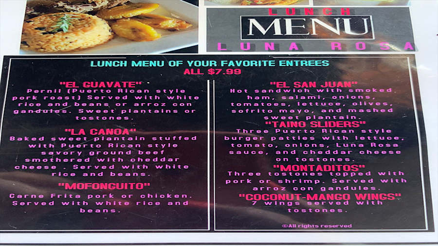 Luna Rosa Puerto Rican Grill is open Tuesday through Sunday.