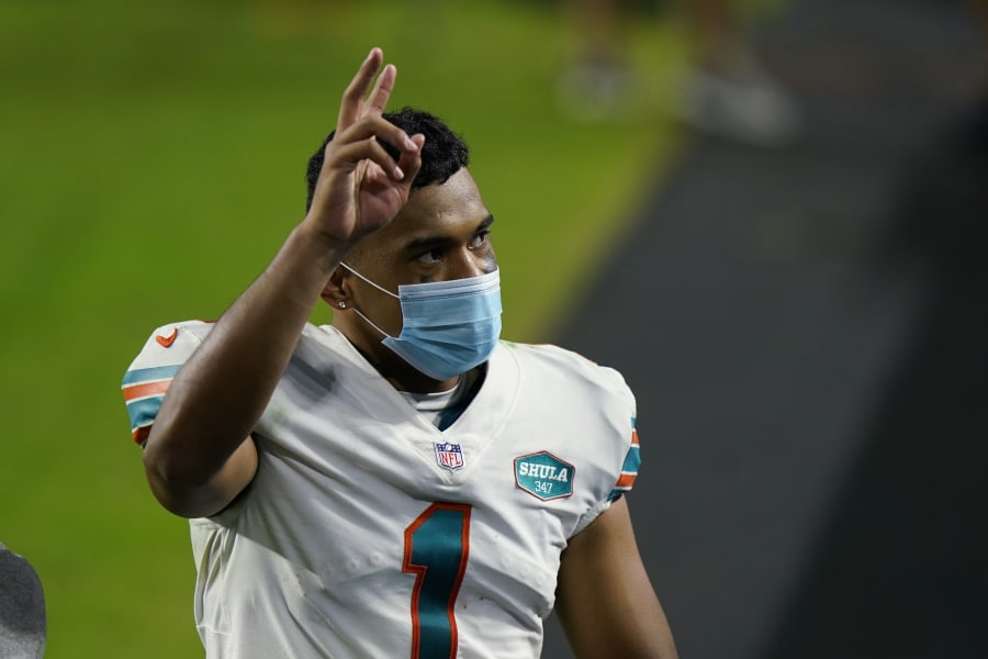 Herbert threw a costly interception and totaled a season-low 187 yards in the QB matchup of high draft picks. Tagovailoa passed for 169 yards with two scores, and improved to 3-0 with no interceptions since taking over for Ryan Fitzpatrick.