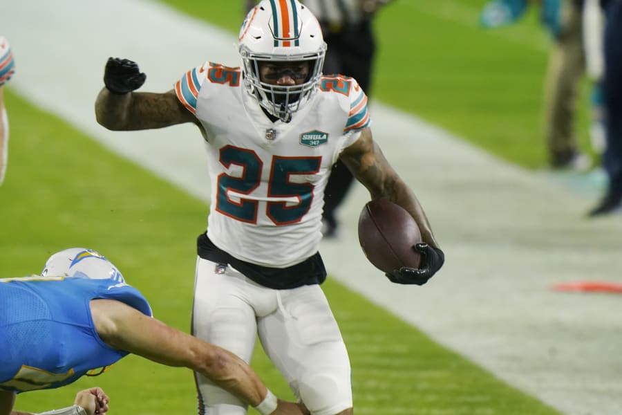The Dolphins' Salvon Ahmed, making his first career start, ran for 85 yards on 21 carries and scored a 1-yard touchdown on his team's first play. The undrafted Ahmed filled in with two other running backs injured and sparked a ground game ranked fourth worst in the league.