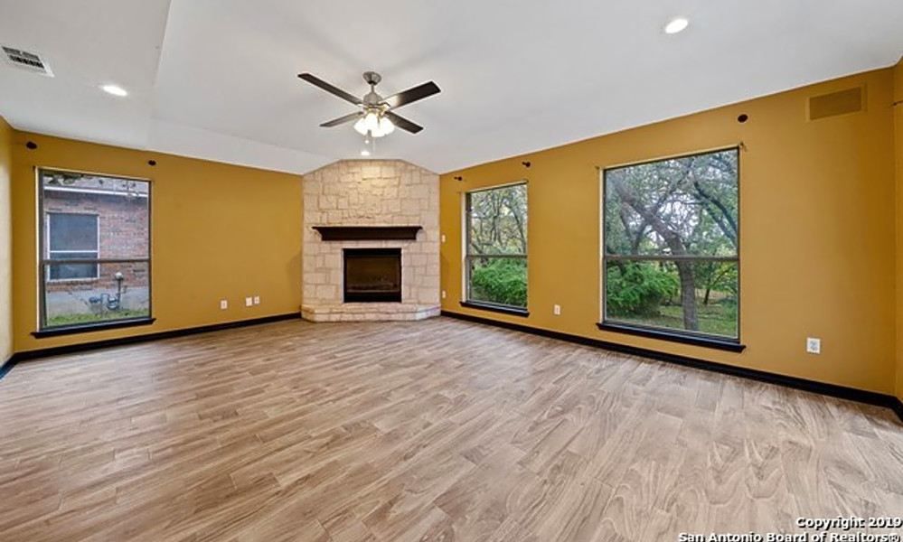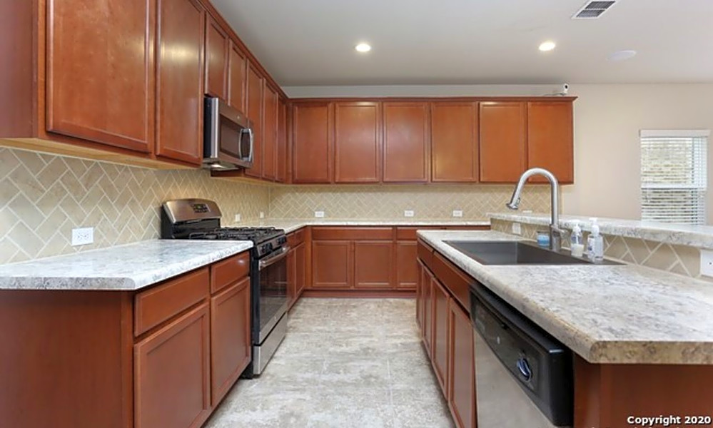 Next, there's this two-bedroom, two-and-a-half-bathroom spot located at 17803 La Cantera Terrace. It's listed for $2,018/month for its 1,466 square feet.