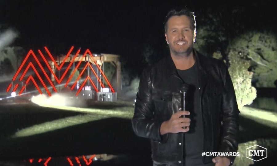 In this video image provided by CMT, Luke Bryan introduces a performance during the Country Music Television awards airing on Wednesday, Oct. 21, 2020. (CMT via AP)
