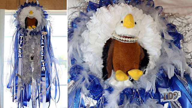 Boys will wear their garter on the arm, and it typically matches the mum of their homecoming date.