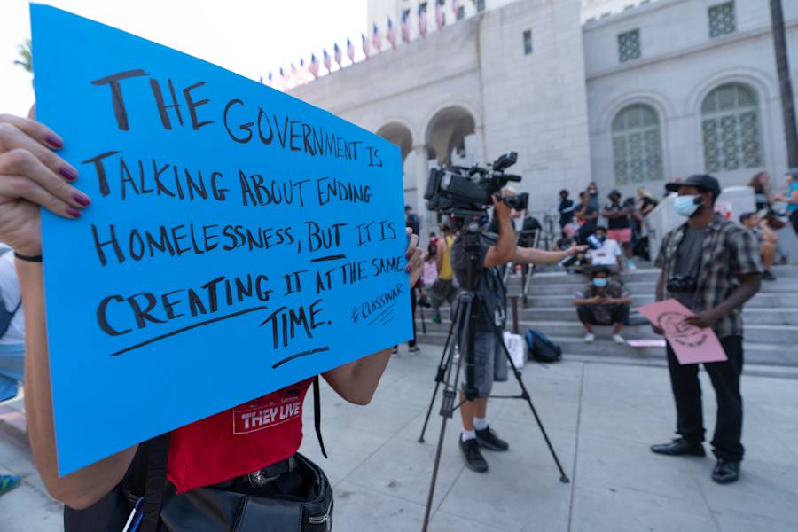The meeting was closed to the public because of coronavirus restrictions, but a group of advocates for the homeless protested outside City Hall.