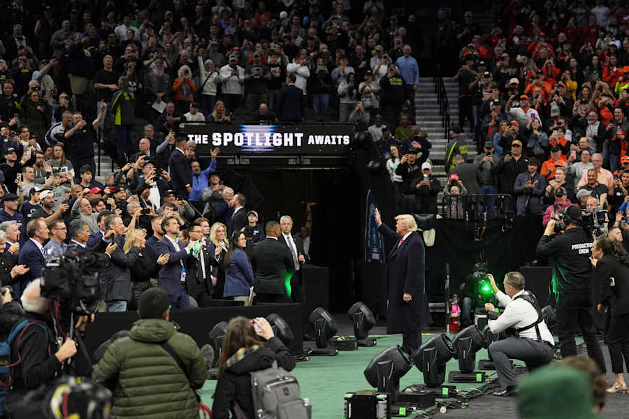 Trump arrived at the Wells Fargo Center in Philadelphia to loud cheers and a standing ovation. He pumped his fists amid chants of “U-S-A!” As the matches occurred, Trump stood near the action and personally congratulated most of the winning wrestlers. Hours later, he left the arena, shaking hands along the way as the crowd roared.
