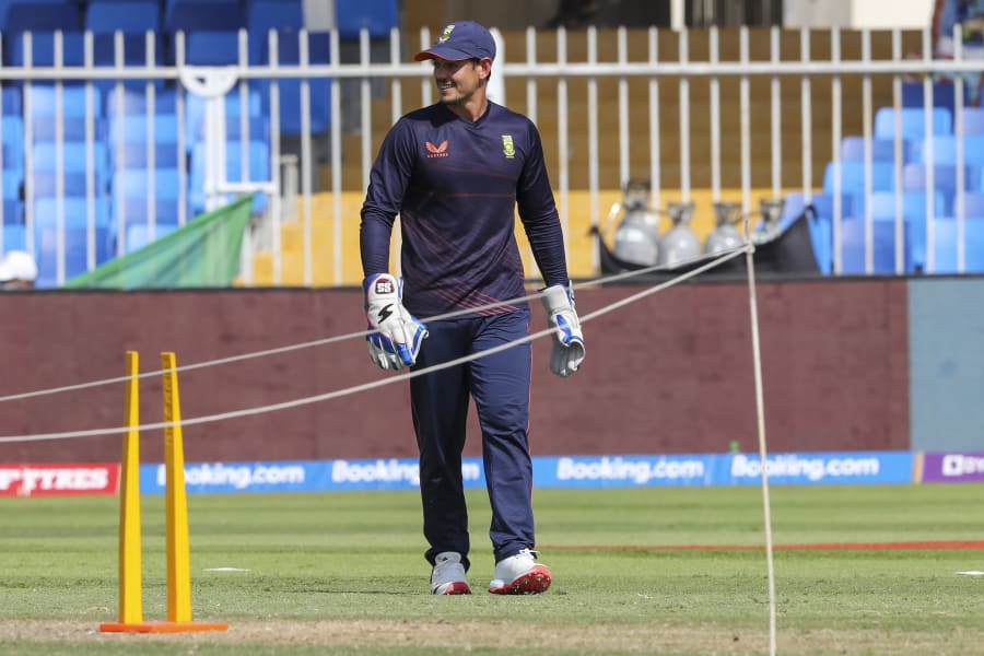 SHARJAH – Quinton de Kock returned to South Africa's team for Saturday's T20 World Cup game against Sri Lanka — and took a knee for the Black Lives Matter movement before play started.