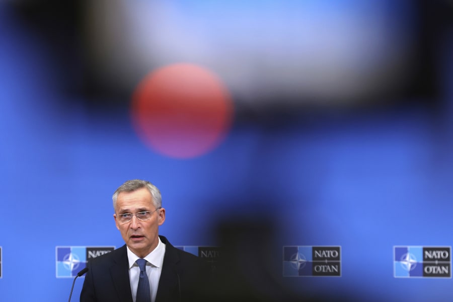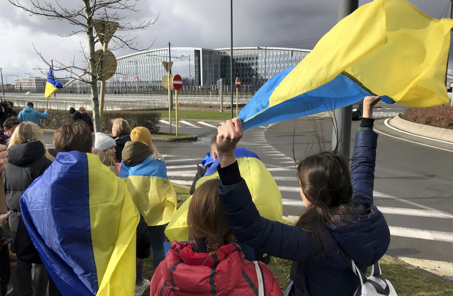 As the leaders prepared for their virtual summit, pro-Ukraine demonstrators rallied outside NATO’s headquarters in Brussels. Dozens of Ukrainians living in the Belgian capital chanted “Putin, Terrorist,” “Close the Sky Down” and “Stop Putin, Stop War.”
