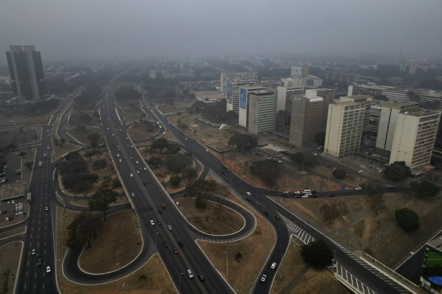 BRASILIA – The buildings in Brazil's modernist capital, Brasilia, have been enveloped in smoky air the past two days. The central part of the country is just the latest region affected by smoke from fires in the Amazon rainforest, Cerrado savannah, the Pantanal wetland and the state of Sao Paulo.