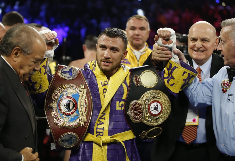Oddsmakers like Lomachenko’s chances, making him a 3-1 favorite in the scheduled 12-round bout. And he likes the idea of having all the belts at once, even without fans to root him on.