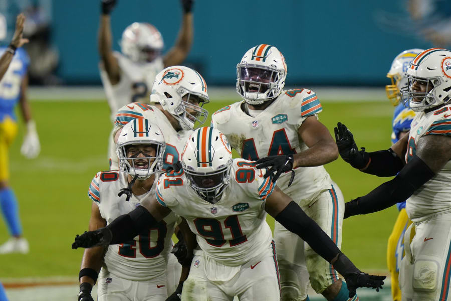 Miami’s Emmanuel Ogbah had a full sack for the sixth game in a row, and on the next play Xavien Howard picked off Herbert for his fifth interception of the year, setting up Miami’s final touchdown.