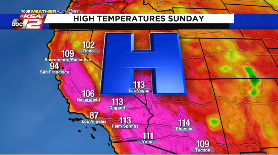 On Sunday, temperatures got within 4 degrees of that record, as extreme heat has taken over much of the Desert Southwest and California.